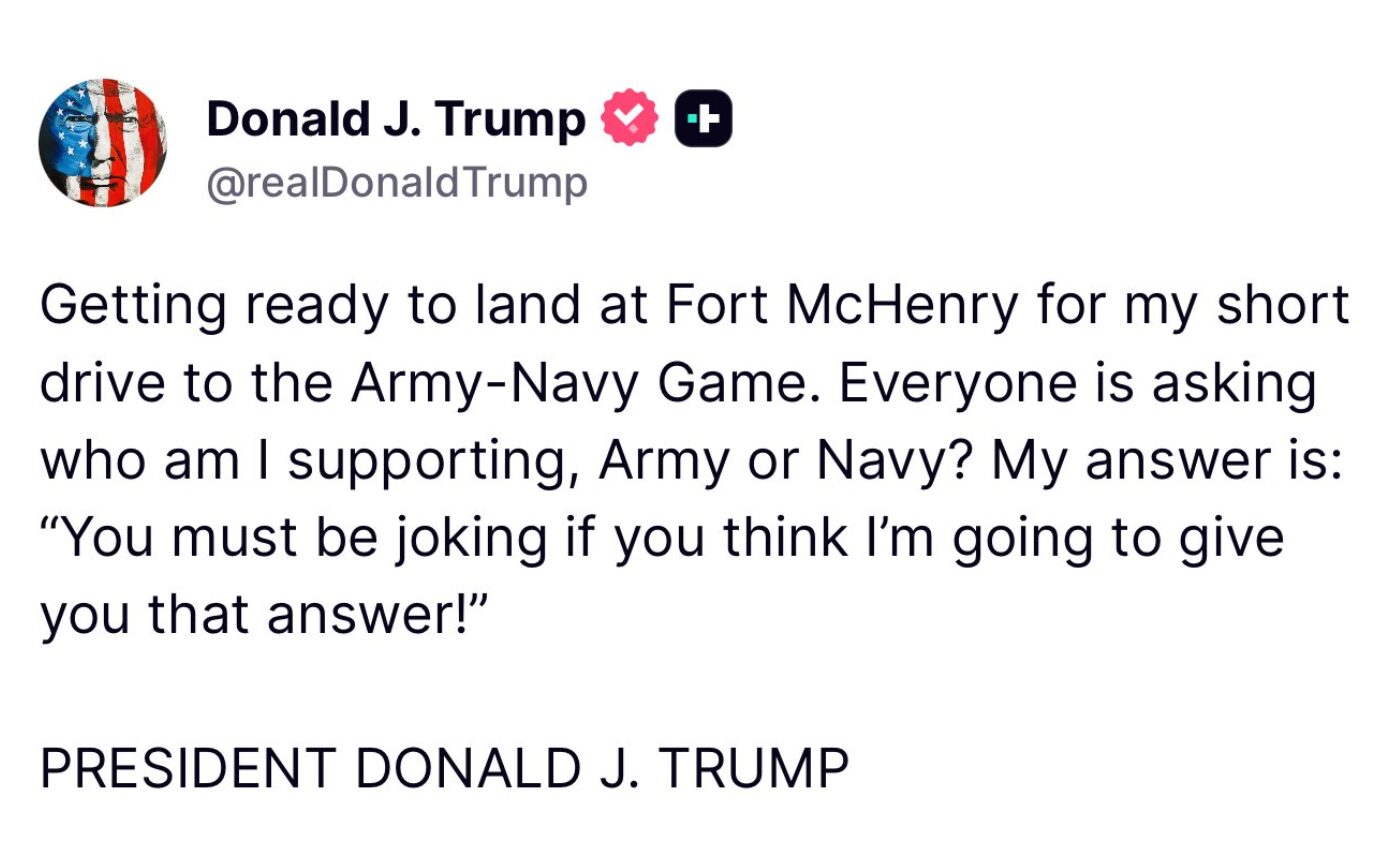 Trump Dodges Army–Navy Pick With Classic Wit Ahead of Annual Military Showdown December 13, 2025 by Mary C. Waggoner
