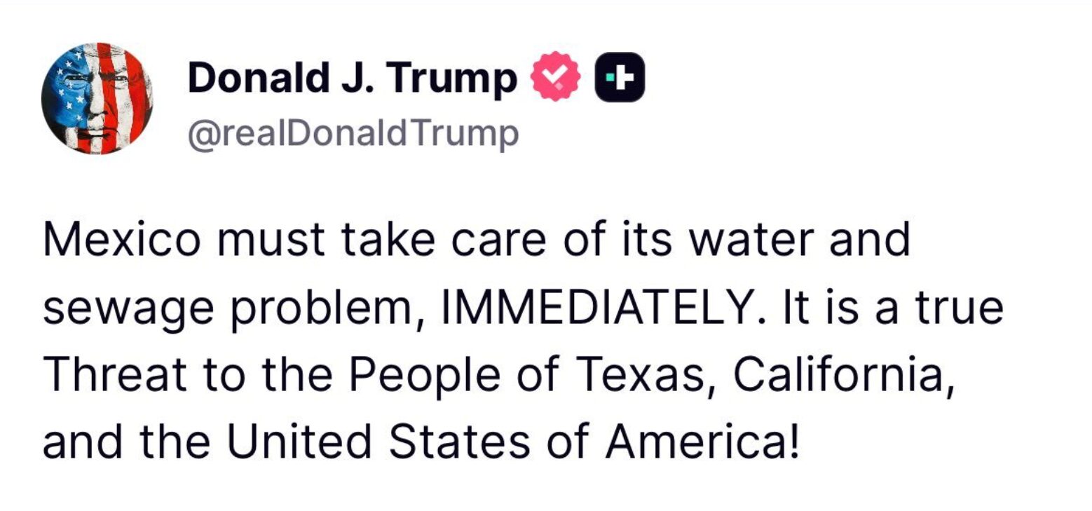 TRUMP WARNS MEXICO OVER WATER AND SEWAGE CRISIS, CALLS IT A DIRECT THREAT TO TEXAS, CALIFORNIA, AND THE UNITED STATES December 10, 2025 by Mary C. Waggoner